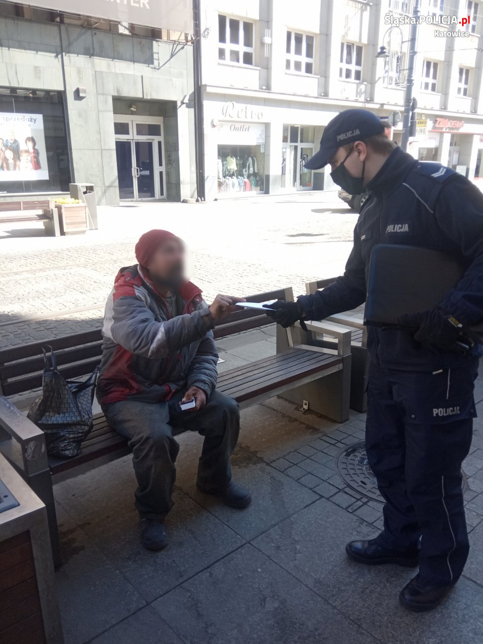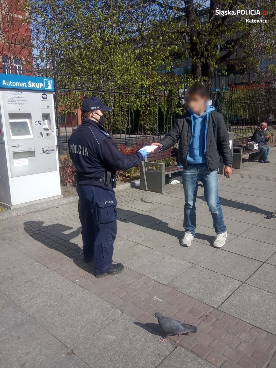 W związku ze stanem epidemii, od 16 kwietnia br. do odwołania na terenie całego kraju obowiązuje nakaz zakrywania ust i nosa w podczas przebywania m.in. w miejscach ogólnodostępnych. Można to robić przy pomocy maski, ale i szalika, chusty lub kawałka tkaniny. Katowiccy policjanci postanowili zadbać o osoby, które z uwagi na swoją trudną sytuację życiową nie zawsze są w stanie same zatroszczyć się o takie środki ochrony. Ogromnym wsparciem akcji była pomoc Urzędu Miasta Katowice, który przekazał katowickiej komendzie sporą ilość maseczek ochronnych. Dzielnicowi z katowickiej „szóstki” podczas patrolu centrum kontrolowali miejsca, gdzie można spotkać osoby dotknięte problemem bezdomności. Mundurowi informowali o miejscach, gdzie mogą otrzymać pomoc oraz wręczali im maseczki, instruując jak prawidłowo z nich korzystać.