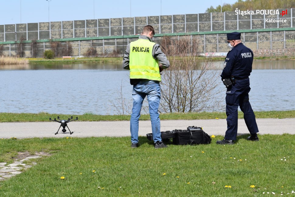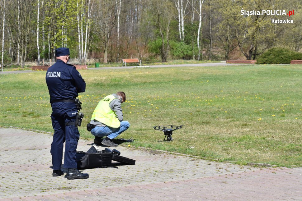 W związku z koniecznością ograniczenia rozprzestrzeniania się choroby zakaźnej COVID-19, wywoływanej przez koronawirusa, katowiccy policjanci kontrolują miejsca pod kątem przestrzegania obostrzeń sanitarnych. Kontrolują parki, skwery i inne miejsc grupowania się osób. Mundurowi nie tylko reagują na łamanie obowiązujących obostrzeń, ale również przypominają o konieczności zachowania bezpieczeństwa, ograniczenia kontaktów z innymi osobami oraz o obowiązku zakrywania ust i nosa. W ubiegły weekend katowiccy stróże prawa, podczas patrolu katowickich parków wykorzystali drona. Użycie drona pozwala na monitorowanie terenu z dużej odległości i daje czas na odpowiednią reakcję służb, zwłaszcza w sytuacjach monitorowania dużej liczby ludzi lub rozległego obszaru.