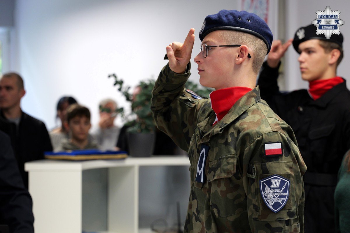 Pierwszy mundurowy krok – uczniowie XV Liceum Ogólnokształcącego im. rtm. Witolda Pileckiego w Katowicach złożyli uroczyste ślubowanie