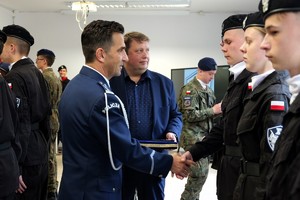 Po złożeniu ślubowania Komendant Miejski Policji w Katowicach insp. Dariusz Kiedrzyn, wręczył pierwszoklasistom pagon Młodszego Kadeta – pierwszy szkolny stopień.