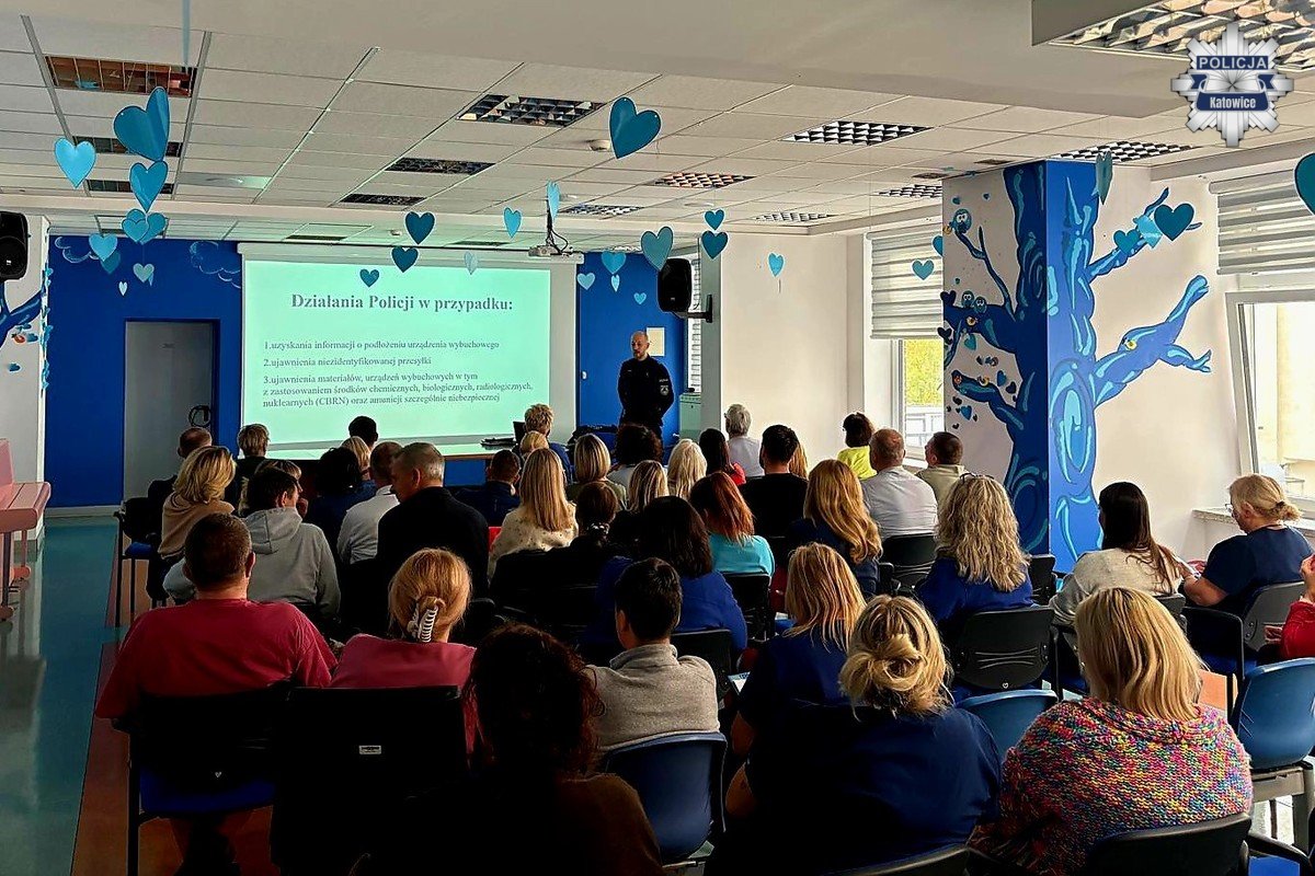 Policji z Wydziału Sztab Policji Komendy Miejskiej Policji w Katowicach wzięli udział w dniu szkoleniowym zorganizowanym przez Górnośląskie Centrum Zdrowia Dziecka im. św. Jana Pawła II Samodzielny Publiczny Szpital Kliniczny nr 6 Śląskiego Uniwersytetu Medycznego w Katowicach. Spotkanie poświęcone było zasadom postępowania w sytuacjach zagrożenia bezpieczeństwa, w tym w przypadku podłożenia urządzenia wybuchowego lub ujawnienia niebezpiecznej substancji.