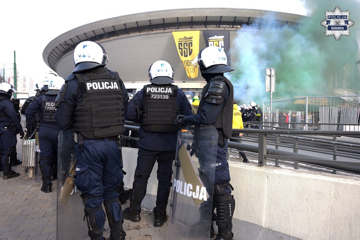 Wczoraj katowiccy policjanci wraz z mundurowymi z Oddziału Prewencji Policji w Katowicach i Samodzielnych Pododdziałów Prewencji Policji w Częstochowie i Bielsku-Białej, zabezpieczali turniej piłki nożnej Spodek Super Cup 2026, który odbył się w Hali Widowiskowo-Sportowej Spodek. Zawody rozpoczęły się o godzinie 14:00, a udział w nich wzięło osiem drużyn piłkarskich.