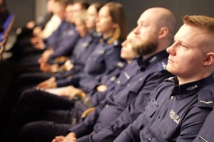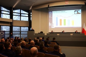 W dalszej części narady głos zabrał Pierwszy Zastępca Komendanta Miejskiego Policji w Katowicach mł. insp. Arkadiusz Stępień, który omówił efekty pracy służby kryminalnej, prezentując osiągnięte wyniki oraz realizowane działania w zakresie zwalczania przestępczości.