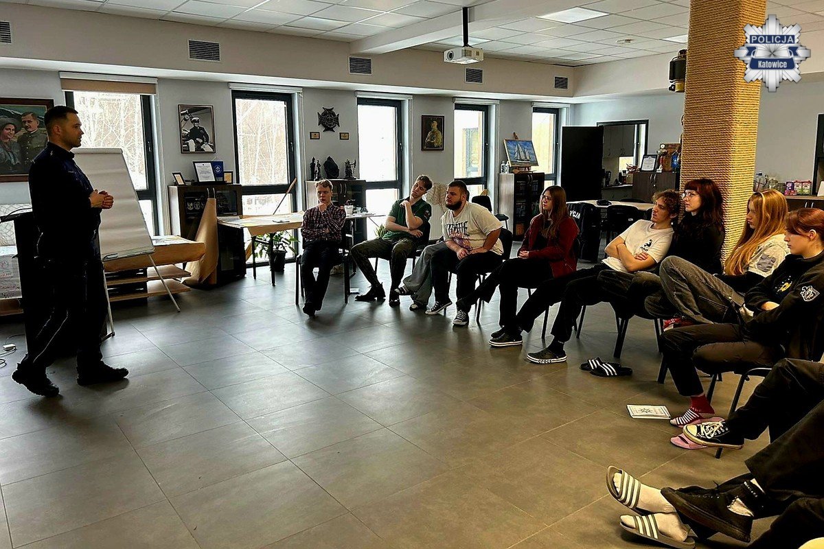 Zajęcia przeprowadził funkcjonariusz Referatu do spraw Profilaktyki i Patologi Społecznej, Nieletnich i Patologii Komendy Miejskiej Policji w Katowicach. Podczas szkolenia omówił kwestie dotyczące odpowiedzialności prawnej osób nieletnich, konsekwencji zachowań niezgodnych z obowiązującymi przepisami prawa, a także problematyka przemocy rówieśniczej. Szczególną uwagę policjant poświęcił zjawisku hejtu w internecie oraz właściwym sposobom reagowania na tego typu sytuacje.