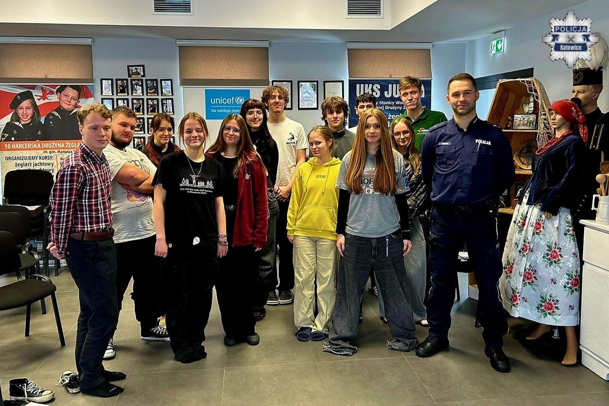 Katowicki policjant przeprowadził szkolenie dla harcerzy przygotowujących się do pełnienia funkcji wychowawców. Tematem spotkania była odpowiedzialność prawna nieletnich, przeciwdziałanie przemocy rówieśniczej oraz zasady bezpiecznego wypoczynku.