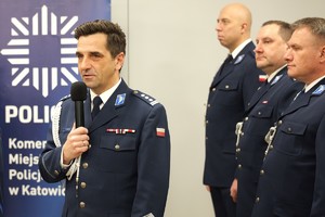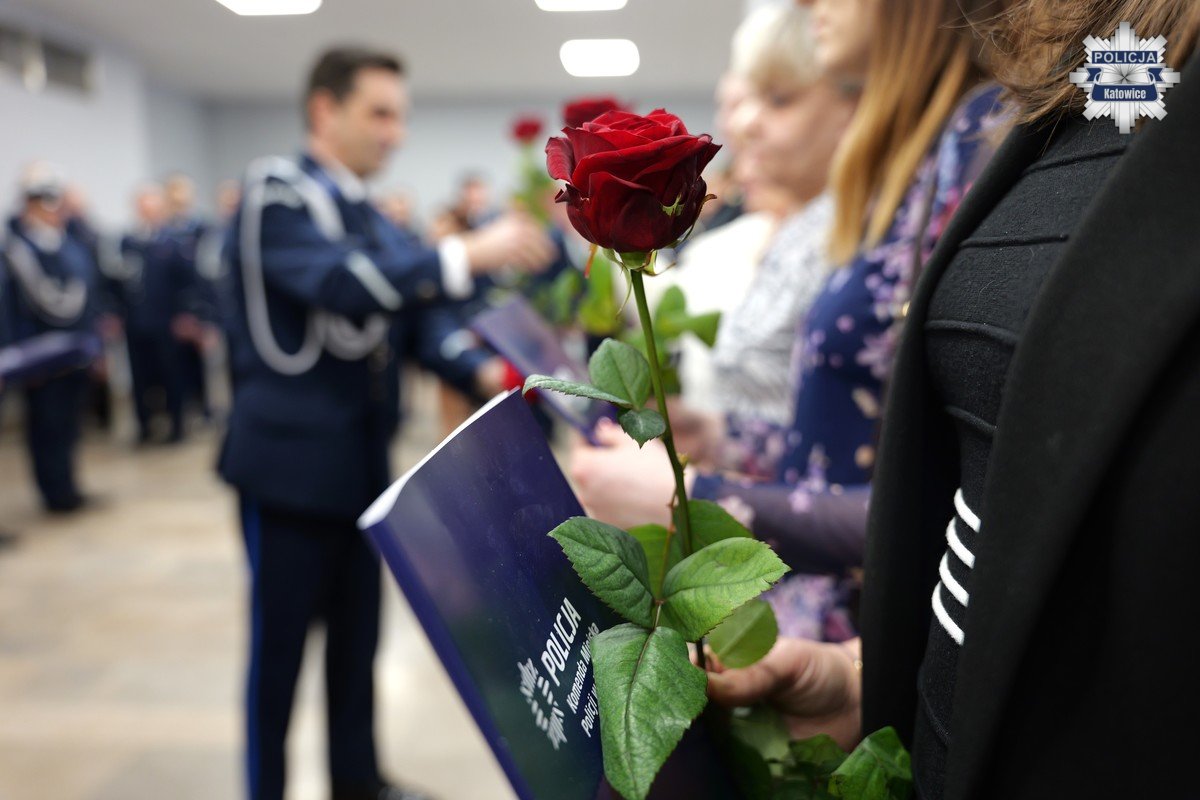 Uroczystość rozpoczęła się od złożenia meldunku Komendantowi Miejskiemu Policji w Katowicach przez dowódcę uroczystości podinsp. Łukasza Frańczaka. Po wprowadzeniu i rozpoczęciu zbiórki głos zabrał szef katowickiej jednostki. Insp. Dariusz Kiedrzyn podziękował wszystkim pracownikom korpusu służby cywilnej za ich profesjonalizm, rzetelność oraz zaangażowanie w realizację powierzonych zadań. Podkreślił, że to właśnie pracownicy cywilni stanowią fundament sprawnego funkcjonowania komendy – dbają o obsługę administracyjną, kadrową, finansową i logistyczną, zapewniając policjantom realne wsparcie. Zaznaczył, że ich praca, choć często pozostaje poza pierwszą linią działań, ma kluczowe znaczenie dla skuteczności całej formacji i zasługuje na najwyższe uznanie.