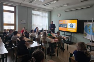 Katowicki policjant z Referatu do spraw Profilaktyki Społecznej, Nieletnich i Patologii spotkał się z uczniami klas podstawowych Społecznej Szkoły Podstawowej nr 1 im. Stanisława Konarskiego STO, aby porozmawiać o jednym z najpoważniejszych zagrożeń, jakim jest przemoc rówieśnicza — ze szczególnym uwzględnieniem cyberprzemocy.