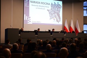 Wczoraj w auli Komendy Wojewódzkiej Policji w Katowicach odbyła się odprawa roczna podsumowująca pracę katowickich policjantów w 2025 roku. W spotkaniu udział wzięli m.in. Pierwszy Zastępca Komendanta Wojewódzkiego Policji w Katowicach insp. Radosław Kacprzak, Komendant Miejski Policji w Katowicach insp. Dariusz Kiedrzyn wraz ze swoimi zastępcami, Prezydent Miasta Katowice dr Marcin Krupa, władze miasta, przedstawiciele służb mundurowych oraz instytucji państwowych.