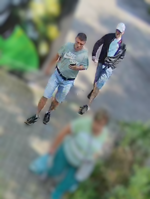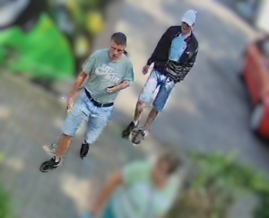 Wizerunki agresorów zarejestrowały kamery monitoringu.